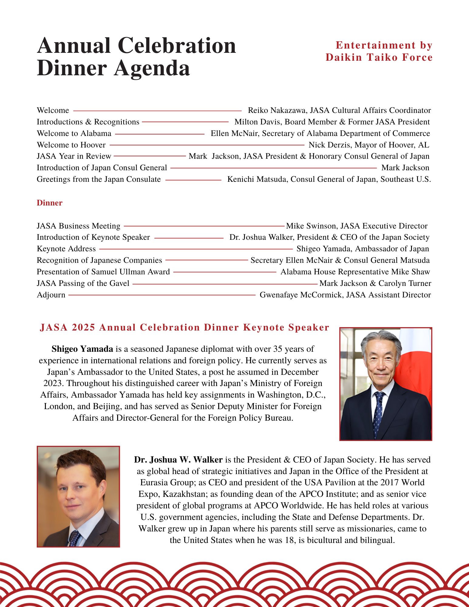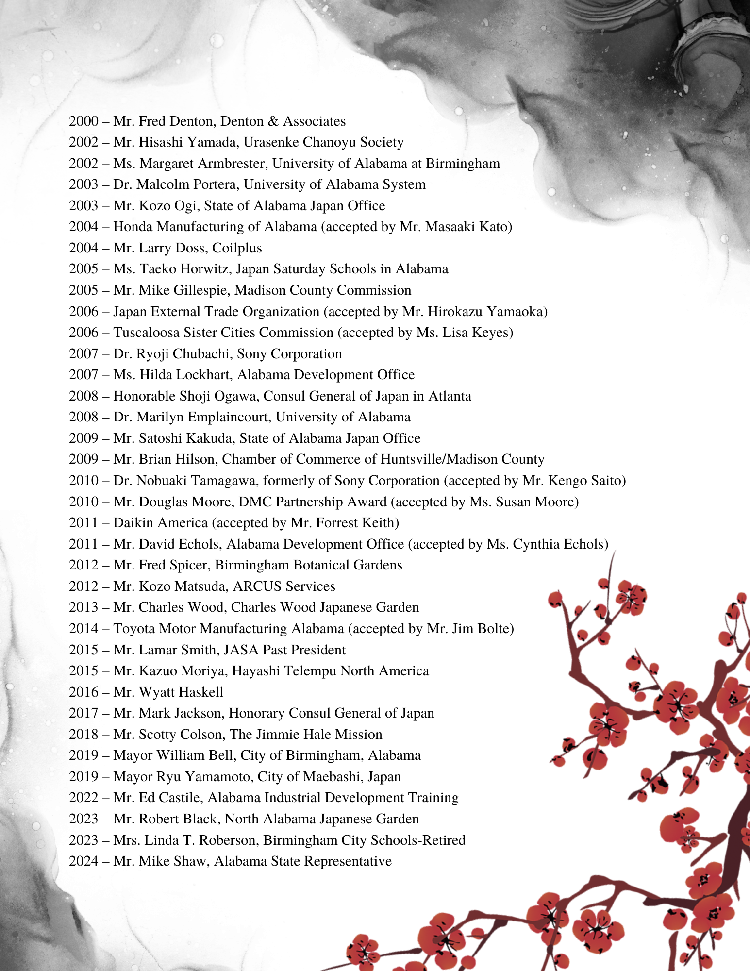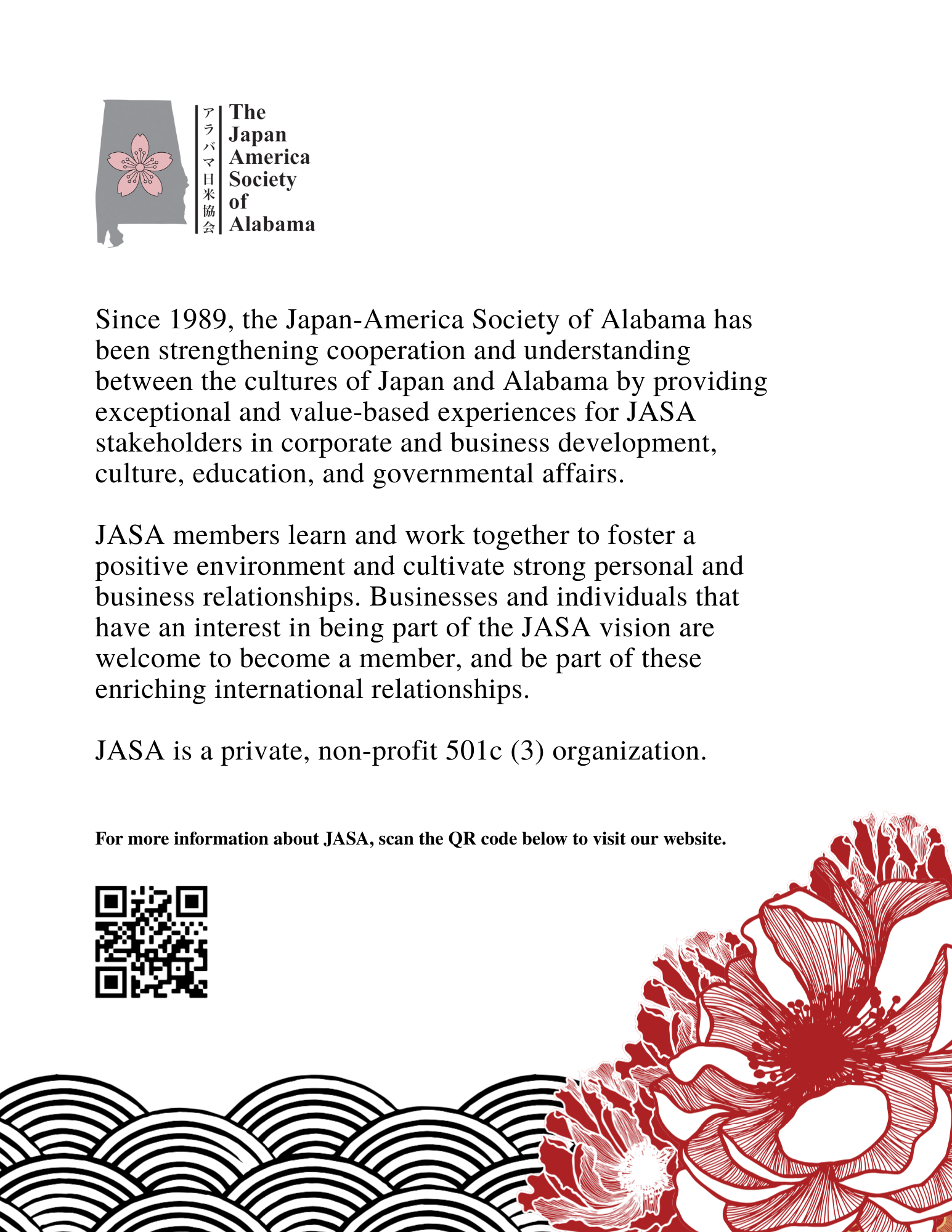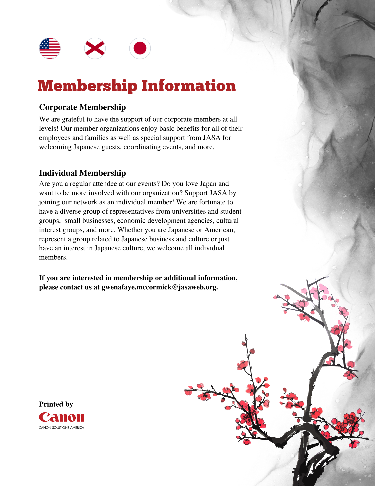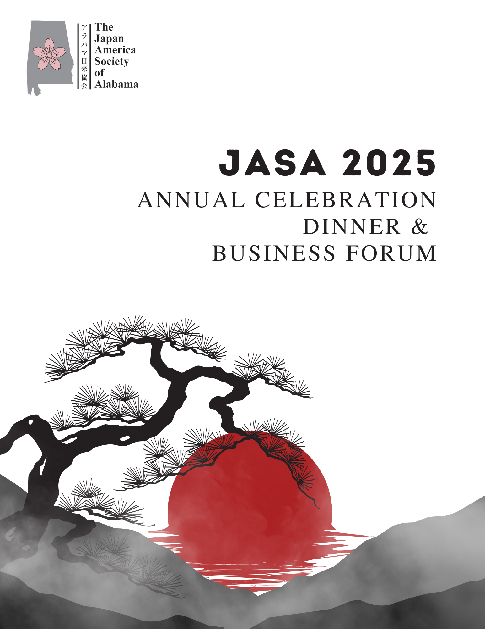 The Japan-America Society of Alabama (JASA) hosts an annual business forum and dinner. I was tasked with designing the event program and other event materials.